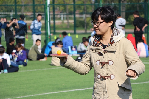 踏着金秋晨光,机电学子齐聚球场,共同期待着开幕式的到来。随着党委书记张军厂老师致辞开始,本次比赛正式拉开帷幕。在裁判员宣读比赛评分及奖惩细则之后,上午场比赛热力袭来:考验默契的三人绑腿,团队合作的木履争先,技巧与耐力双重压制的乒乓球颠球赛。每一个项目都以其独特的魅力吸引着同学们,每一块场地上都洒满着最暖心的阳光。