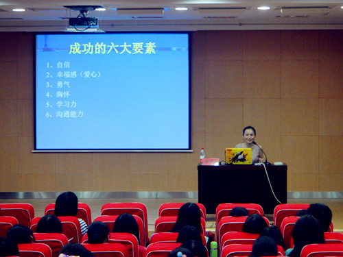 报告会上,杨静涛女士指出成功从良好的人际交往开始,她提出“三分钟人生”这一概念。第一分钟,让人认识你;第二分钟,让人喜欢你,第三分钟,让人信任你。她幽默风趣地解读了“输”与“赢”的深刻内涵,告诉同学们成功路上必不可少的几点要素和应该注意到的问题。