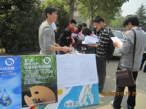本次宣传活动以现场咨询和发放宣传单的形式进行,在人流较多的地方摆放宣传海报和设置现场咨询点,现场解答有意愿参加环境科技竞赛同学们提出的疑问,让更多的同学们深入了解环境友好科技竞赛的具体内容,激发同学们参与环境保护和环境建设活动。
