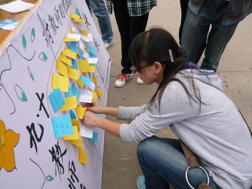 9月8日,校学生会在北校区举办了 “教师节每人一句祝福语”活动。活动收集到我校同学们在教师节来临之际对全校教教师的衷心祝福,表达了同学们对身边无私奉献的老师的感恩之情。活动在全校师生中引起了较大反响。