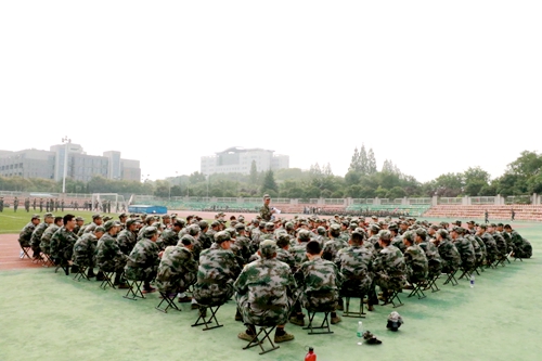 军训不只是由‘热’,‘苦’,‘累’三部曲交织汇编的愁苦乐章,一天的训练告终,相信同学们晚上在灯下写军训感言时,回想起白天的生活,一定充满了激情与充实感。阳光的灼晒、雨水的浇淋、教官严格的督促,都会化作军训中最美好的回忆。迈着铿锵有力的步伐,外语学子们一定能够体会其中的趣味,明白汗水背后的微笑才最动人!”