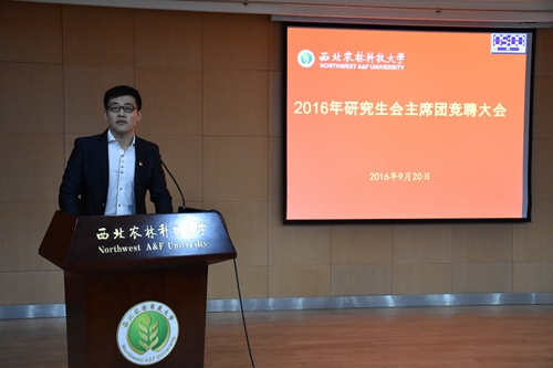 为实现校研究会核心干部的工作交接,我校2016届研究生会主席团竞聘大会于9月20日下午在北绣南报告厅举行。校党委研工部副部长、研究生教育管理处处长聂海、团委副书记高杰、李春祖、张永斌出席会议, 现任研究生会副秘书长安相主持会议。