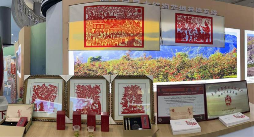 步入陕西佳县古枣园系统展区,一块巨石当即就闯入视野,“全球重要农业文化遗产”几个鲜红的大字张扬而醒目,经过的人忍不住想去倾听这佳县红枣背后的故事。