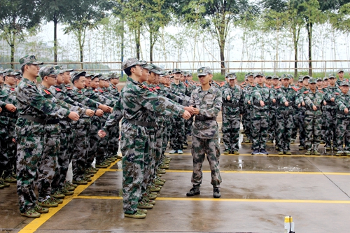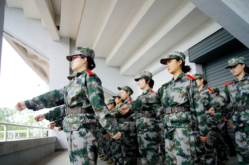 “脚跟对齐,脚尖张开约60度,挺胸、收腹、肩向后,下巴微台”,教官的训导在同学们的耳边回响。
