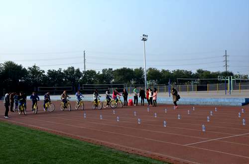 同时,现场报名项目吸引了在场同学的参加热情,自行车障碍赛和自行车慢行的比赛整整持续了近2个小时。