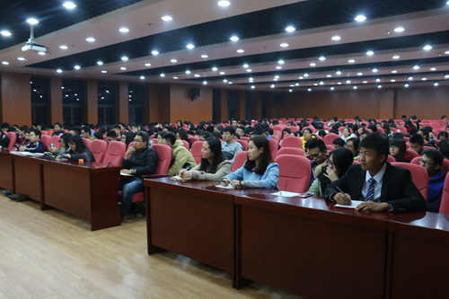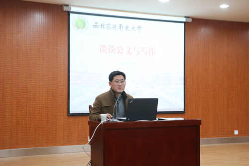 李春祖老师主要从“写作体会,公文概念,公文的语言特点,如何提高写作水平”四个方面进行讲解。李老师结合自身工作经验,用语言幽默风趣的语言和形象生动的例子,跟同学们分享了公文写作的体会感受。公文写作好像茶一般,第一道苦似生命、第二道甜若爱情、第三道淡如清风。李老师鼓励同学们,重视写作能力,通过学校各种有利平台,努力提升写作技能与标准。