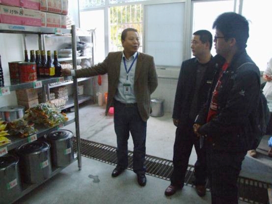 在各食堂管理员引导下,学生会与后勤服务中心负责同志检查了食堂操作间的卫生状况。饮食服务中心负责同志为检查的同学们讲解了食堂餐具的消毒问题,并让同学们检查了消毒后的餐具。检查中,食堂的操作间、仓库等地方物品摆放整齐,环境干净整洁,得到了检查小组一致好评。特别是学校投入使用的米饭生产线及配送方式方便、快捷、卫生,受到同学们的称赞。