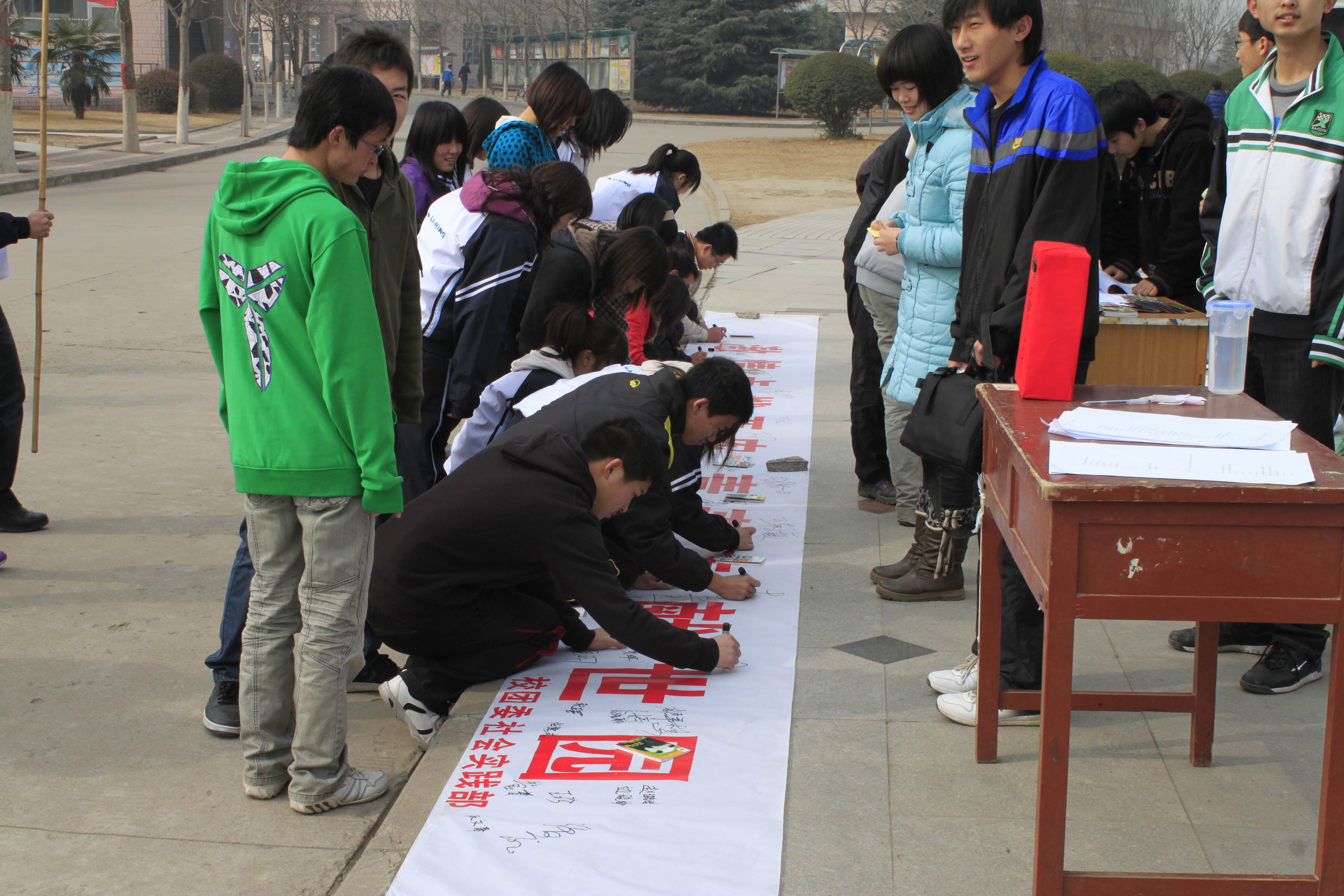 老师和同学们也纷纷驻足,积极参与到活动中来,热情地在印有“激情点燃西农,青春奉献世园”横幅上签下自己想说的话语以表达对世园会,对祖国深深的祝福。