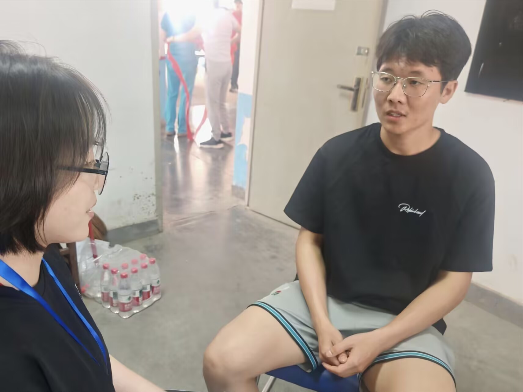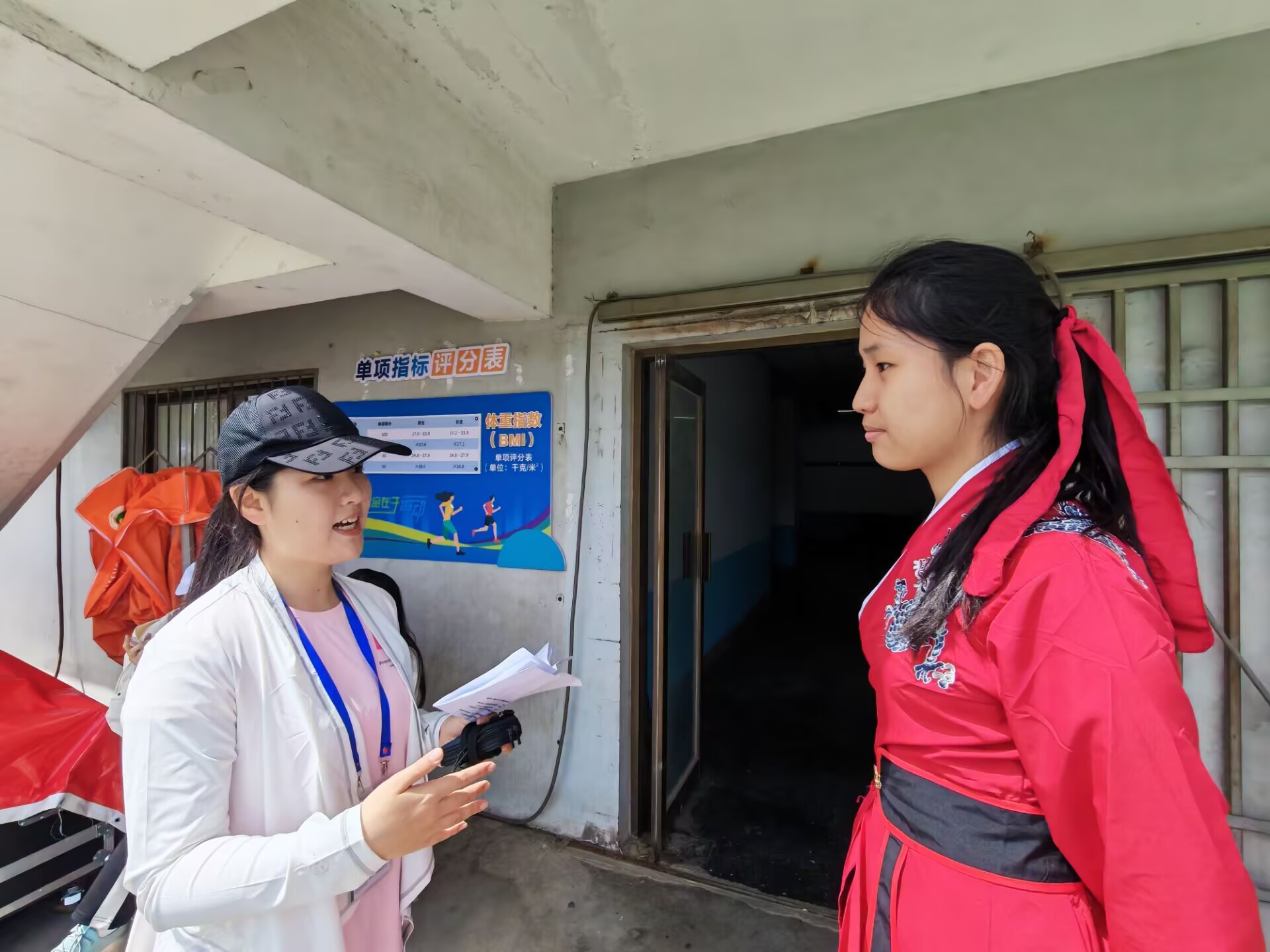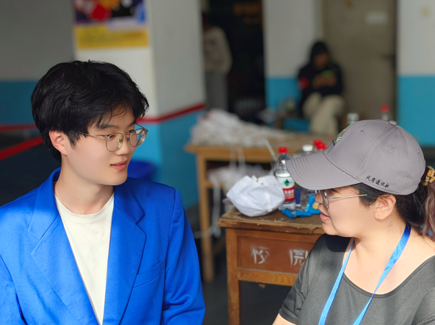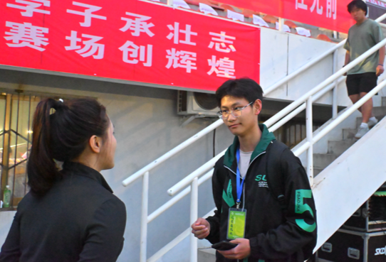 新闻中心记者朱芝萱在采访学生裁判张同贤