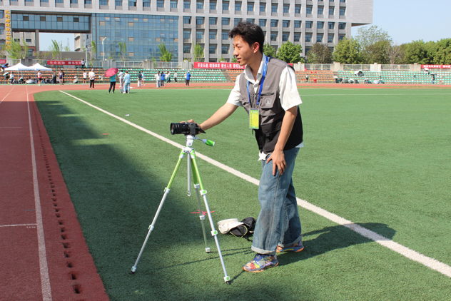 融媒体中心张浩宸同学正在拍摄田径运动员