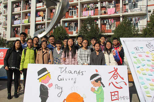 11月29日理学院团工委学生会在西超雕塑前举办以“铭记感恩 让爱永存”的感恩主题活动,旨在号召全体同学常怀感恩之情,常为感恩之行,用真实的行动表达感恩之心。
