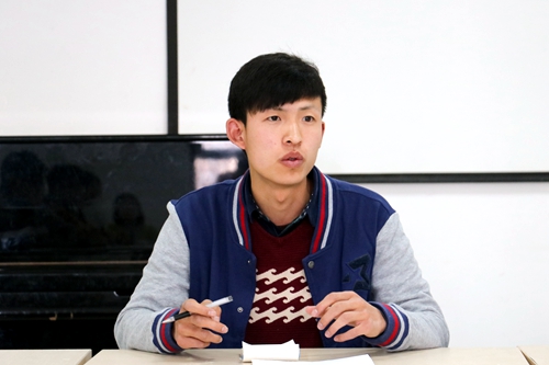 校团委宣传部部长任自新阐述了自己的看法,他表示会继续实行会议机制,定期组织大家讨论、学习,对于工作人员综合素质的提升,校团委也会积极邀请老师为大家做培训。希望各院系积极展开工作,向校团委投放更多有质量的文章。