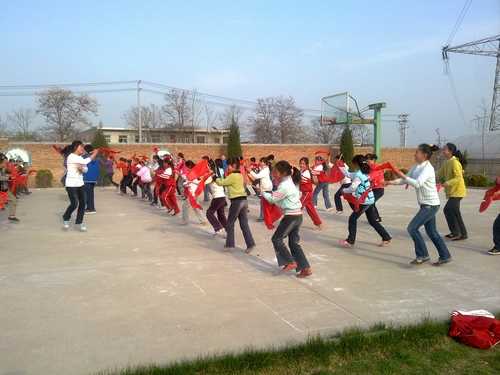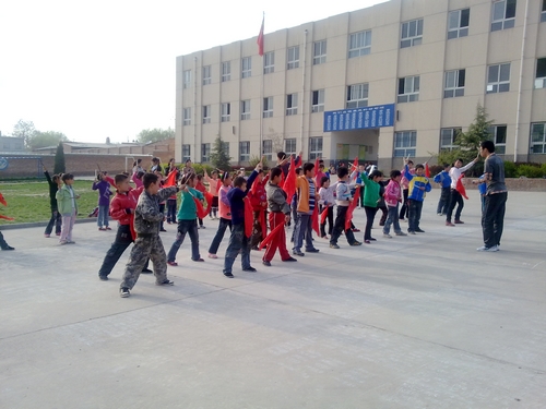 当天下午4点20分,机电学院学子及腰鼓队同学一行10人到达了杨村乡小学,期盼已久的学生们早就在校门口迎接。腰鼓队员为小学生们的热情所感染,顾不上休息马上按照计划将学生分组开始训练。尽管小学生年龄的差异和基础的不同给教学带来了困难,但同学们依然耐心地做好培训工作。