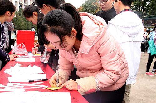 此次活动分为线上问卷调查及线下投票两个环节。其中线上问卷以选择题和主观题的形式,从食堂工作人员的服务态度、菜价、卫生环境、就餐秩序等角度入手,邀请学生们对北校区各食堂情况作出评价,并提出对食堂改进的相关建议。线下活动则是通过西雕现场宣传,以便签留言和横幅签名的方式鼓励同学们积极加入到食堂评议的队伍中,为食堂发展贡献一份力量。