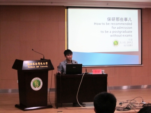 学院08级优秀毕业生李聪作为保研的学生代表为同学们详细讲述了保研过程中的有关事项,他指出先苦后甜,建议同学抓紧大一、大二的时间,多参加学校的社会实践活动、科研项目以及专业设计比赛等,为保研奠定基础;毕业生刘冬梅为同学们介绍了求职的技巧,她指出在大学中,要树立目标,脚踏实际学习生活,要拥有竞争意识,充分利用自己身边的资源。作为考研代表,林志南同学介绍了关于考研方面的知识,鼓励同学们在平时学习上下功夫,从点滴积累做起。