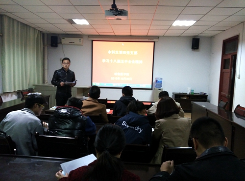 10月30日下午,动医学院本科生第四党支部组织全体学生党员和部分入党积极分子在会议室集中学习了十八届五中全会精神,学习形式多样,学习反响热烈。