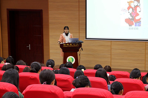 为关怀学院2017级新生女生的身心发展,引导新生树立正确的爱情观,帮助学生更好地把握大学生活,10月9日晚,动物医学院在4129报告厅成功举办新生入学教育系列活动之“爱情花开”恋爱心理专题报告会。会议由马克思主义学院教师、国家二级心理咨询师武春芳老师担任主讲人,学院全体2017级女生聆听了本次报告。