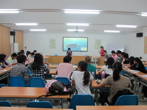 此次英语沙龙活动由创新实验学院2010级生物科学(实验)104班刘明喆同学主持,参与活动的8名同学分别担任中、美、英、法、日、俄、德、瑞士等8个国家的代表,“各国代表”按照大会规则,通过演讲从不同角度分别阐述了本国对于国际环境保护和文化教育问题的立场,为“自己国家”的利益不断进行辩论和游说,现场气氛十分热烈。