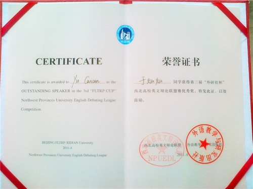 近日,第三届“外研社杯”西北高校英文辩论联盟赛在西安电子科技大学举行,来自西安交通大学、西安电子科技大学、西安外国语大学、西北大学等高校的64支代表队参赛,经过两天共12场激烈的角逐,由经管学院学生徐婷、于灿灿组成的代表队获优秀奖。