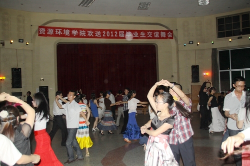 6月4日晚,由资源环境学院团工委、研究生会、学生会主办的“夜之假面,舞所不在” 交谊舞会在北校区李秀厅举行。舞会拉开了资环学院2012年毕业季系列活动的帷幕。