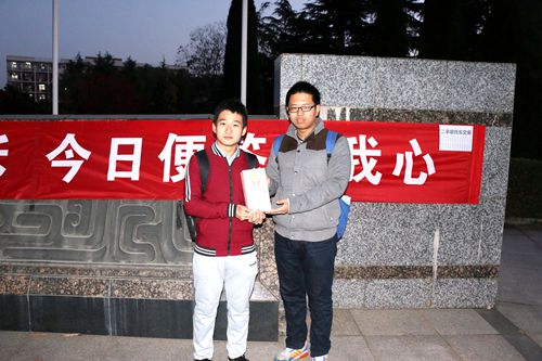 11月10日清晨,天气虽然寒冷,却挡不住同学们火热的心。活动还没开始,不少同学就早早地等候在西雕,准备在盖早卡的同时,领取活动号码牌和信封。领取了号码牌的同学将有机会参与第二天的抽奖活动,而获取了信封的同学则可以把自己的表白装进信封,于第二天清晨交给工作人员,由他们负责传递。此外,同学们还可以获得棒棒糖、巧克力等贴心小礼物,让同学们在“双十一”光棍节这样的日子里,感受到来自大水建的温暖。