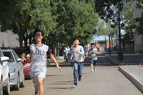 为提升我院新生体能素质,丰富新生大学生活,9月23日,理学院团工委学生会在理科大楼前开展2015级新生越野赛。