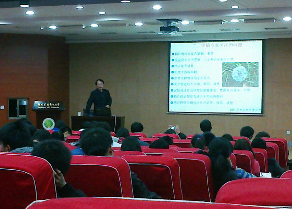 为了鼓励广大同学们积极参与“挑战杯”竞赛,规范同学们的论文书写,11月8日晚,由校团委主办、动科学院承办的“走进挑战杯”系列报告会之《研究论文的撰写与发表》在北校绣山活动中心报告厅举行。动科学院胡建宏教授为同学们作了一场精彩的科创报告。