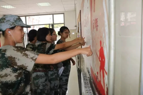 食品1609 邓瑞莎谈到:“71年前在全国人民的团结协作下,将法西斯赶出国门,1年前,我们在天安门前以隆重而严肃的阅兵仪式向世界宣布抗战胜利的意义,而今天,学院以按手印的方式将这个日子镌刻在我们心中。无论是军训还是抗战,我们都在用行为诠释着中华民族的伟大精神“团结就是力量”,团结就会成功!”