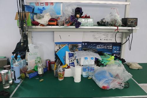 这是员工们放置私人物品的桌子,上面零零散散的摆着他们的水杯。