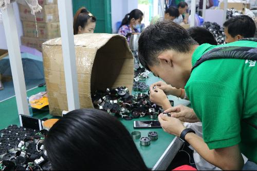 面对成堆的零件,员工们不慌不忙,井井有序进行加工。