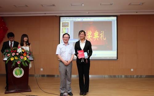 颜永平老师为校园演讲比赛冠军获得者颁奖