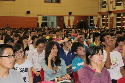 报告会过程中,颜永平老师始终不忘与同学们展开互动,多次带领同学们朗读有关演讲口才的精彩语句,并鼓励同学们积极提问,现场气氛热烈。