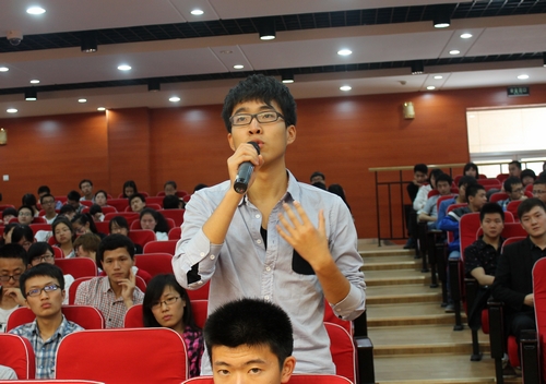 报告会最后的提问环节,陈耀祥和在场同学进行了更深入交流,对同学们所提出的生活、学习以及今后的考研就业的问题一一作了详实的解答。