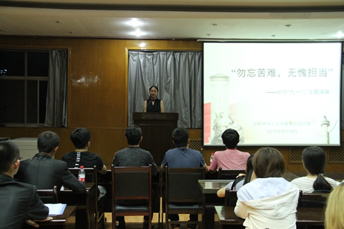 为纪念在抗日战争中献出宝贵生命的革命先烈,深化全校师生的爱国主义教育,弘扬不屈不挠、甘于奉献的革命精神,9月17日晚,在“九一八”事变85周年来临之际,人文、水建、创新、林学院在人文学院模拟法庭举行了纪念“九一八”的主题演讲活动。本次演讲以“勿忘苦难,无愧担当”为主题,由四个学院组织部承办,来自四个学院共10名参赛选手参加了本次比赛。创新学院学生会主席钟泽坤、人文学院学生会主席王可心、林学院学生会主席陆杨、水建学院学生会副主席苗望川应邀出席了本次活动。