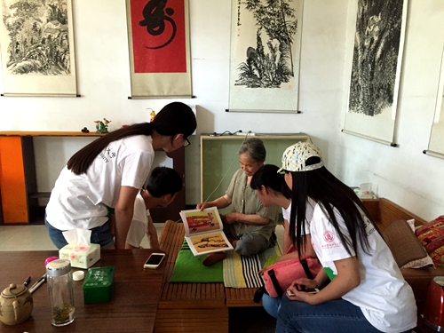 由于李奶奶年事已高,队员们并没有以问题的形式进行采访,而是与奶奶进行近距离地交流。李奶奶热情地接待了同学们,她拿出自己已出版的的画册,一页一页地讲述着画中所描绘的场景,她的作画思维,以及每一幅作品背后的创作故事,即使时间过去已久,她依旧记得曾经作画的每个细节。