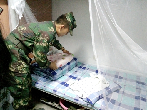 在下午的训练中,各个班级回到自己的宿舍,进行了内务整理与评比,在教官的严格要求之下,同学们收敛了自己散漫的作风,按照一个军人的要求,将内务收拾整齐,虽然不及军队中那般整齐划一,但已然有了些许军人的风采。