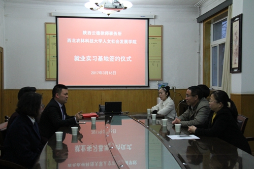 3月16日晚,人文学院法学专业与陕西云德律师事务所在人文学院二楼会议室举行了就业实习基地签约仪式。人文学院党委副书记常振山,法学系主任郝晓红,陕西云德律师事务所律师代表,以及法学专业部分学生出席了本次签约仪式。