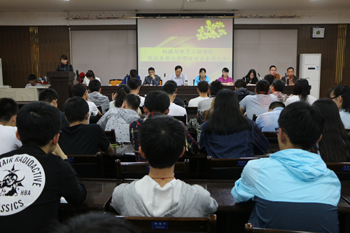 在激昂的国歌声中会议拉开帷幕。会议伊始,团工委书记乔海英做了工作总结。她表示此次院庆的举办取得了前所未有的成功,从到场人数、现场氛围、晚会设置等各环节都有了明显的进步与改善。此外,学院积极邀请兄弟院校,让各院校间的凝聚力大大提升。随后,辅导员马香丽宣读院庆系列活动表彰决定,并代表全体师生向活动中勤恳认真的工作人员表示感谢。体育辅导员赵文红宣读校运会表彰决定,她表示在此次校运会上机电学子奋勇拼搏、一马当先,取得了有史以来最高的可喜佳绩。