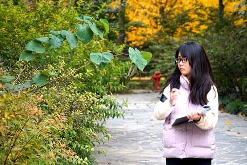 来自不同学院的近四十支队伍参加了此次大赛。参赛人员被分成了四个小组从四个起点同时出发,全程动态答题,按照树种上面的编号写出每个树种的名字、特性、文化特征等信息。一步一移,趣味盎然,即便是深秋的冷风也没有打断同学们的答题热情。比赛历时一个小时左右,各参赛队伍经过紧张的答题之后,冯老师代表学校向同学们表达期望与嘱托,并宣布植物风采大赛初赛圆满完成。