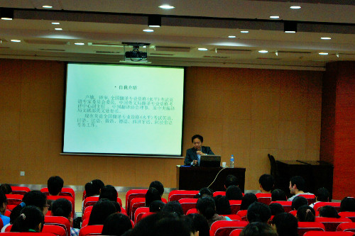 5月5日上午,外语系邀请中国外文局翻译专业资格考评中心副主任卢敏在北校区绣山活动中心报告厅作了《职业翻译要求与国家翻译资格考试》的专题报告。外语系副主任田志强、系党委副书记王小平及200余名本科生、研究生参加了报告会。