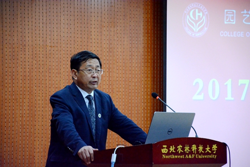 会上,院长马锋旺教授代表学院向来自全国25个省市自治区的212名新生表示热烈的欢迎。他与新生共同回顾了园艺学院的历史沿革,分析了目前园艺学科的发展现状,畅想了园艺就业的广阔前景。同时,他通过具体的案例,与同学们分享了“园艺是科学、技术与艺术的结合,是环境、生活与健康的提升”的理念,增强了新生们对学院及专业的认同感、归属感和自豪感。马院长在致辞中寄语新生:一是要转变角色,迅速适应大学生活,二是要锤炼品格,德才兼备格调高雅,三是志存高远,务实创新坚定果敢。
