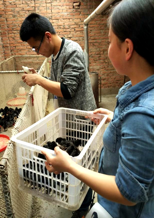 将接种后的小鸡转入育雏室