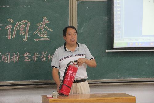 会上,刘庚军老师通过分享亲身了解到的校园安全事件并用生动幽默的语言向同学们阐述,刘老师告诫同学们:“隐患显于明火,安全人人有责。同学们只有提高自身的安全意识,才能防患于未然。健康安全的度过大学的时光。”并在现场演示灭火器的使用方法和有效的自救、逃生方式。同时每位到场同学都在在现场学习了校保卫处发放的《大学校园安全知识读本》的部分内容,将理论和实际相结合,更加生动真实地学习到了校园安全知识。