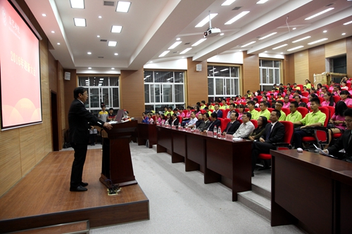 党委副书记唐海波,结合学生的成长需求,从生活方式的调整、学习方法的变通、高中生活与大学生活的切换,给全体新生提出了多条切实有效的建议。从每日读书花费的成本计算到每天晨读半小时对大学四年的学习生活乃至一生发展的重要影响;从结合自身经历帮助舍友养成良好的生活习惯到携手学生家长帮助学生成长成才,唐老师讲解的每一个事例都能够让学生在轻松诙谐的环境中体会到大学要认真学,生活要认真过,用心学习,用心做人,我们要时刻落实。