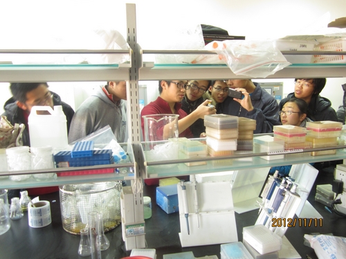 11月11日,创新实验学院2012级实验班、基地班30余名学生放弃周末休息时间,在高年级学生刘昊、耿达立的带领下走进园艺学院马锋旺教授实验室。刘昊同学首先为低年级同学们介绍了实验室的主要研究方向果树逆境生理与抗性改良等基本情况;随后,详细讲解了实验室中常规仪器设备的用途及操作方法,并就微量取样枪等部分实验仪器的使用进行了现场演示。随后,耿达立同学讲解了DNA凝胶电泳的实验原理、操作方法等内容,并谈了自己的科研体会和感受,结合自身经历,为低年级同学现阶段的学习和今后专业选择提出了一些建议和参考。最后,两位学长还就新生们感兴趣的选方向、选导师等问题进行了耐心细致的解答,新生们纷纷表示开阔了视野,受益匪浅,对今后的学习科创具有很强的指导意义。