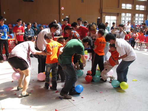 联谊会在集体手语舞《相亲相爱一家人》中拉开帷幕。在老师、家长和志愿者的帮助下,智障儿童们参与了 “坐花轿”、“小脚踩大脚”、“踩气球”和“我是木头人”等集体游戏,表演了合唱《幸福在哪里》、《青春舞曲》以及集体律动《踏浪》、《我们是冠军》等。“全民动起来”亲子跑步比赛更让现场充满和谐和欢乐。整个联谊会场洋溢着孩子们灿烂的笑脸,回荡着快乐的笑声,让在场的观众深受感染。