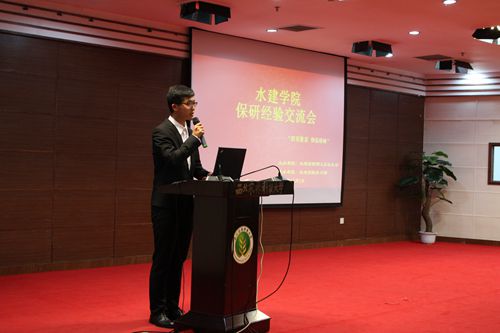 交流会上,保研的学长学姐们就保研问题发表了自己的看法,分享保研经验。保送到中国水利水电科学研究院的水资专业学生白雁翎对自己选择的学校进行了简单介绍,并给大家介绍了几点保研过程中有用的建议,同时告诫大家想要保研一定要付出足够的努力,成为一个全面发展的学生;保研到河海大学的农水专业学生童山琳和保研到中国科学技术大学的能动专业学生马贺都给大家详细介绍了学术特长生类型的保研,告诉大家要重视学科竞赛和科研创新,并告诫大家面试的重要性,一定要认真准备;保研到上海交通大学的电气专业学生朱震给大家讲述了自己的保研历程,并详细介绍了关于夏令营的有关问题;保研到本校的土木专业学生张晓磊结合自己和同学的保研经历解答了搜集的一些同学们关于保研的疑惑;保研到北京师范大学的水工专业学生郭中方着重强调了英语学习的重要性以及保研对英语成绩的要求,他风趣的语言、幽默的风格,赢得了同学们阵阵热烈的掌声。