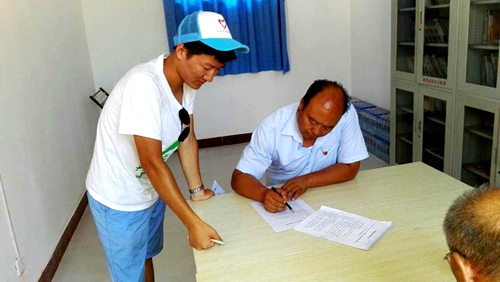 队员郭盛明请支书填写问卷