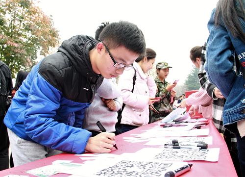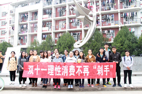 “双十一”即将到来,很多同学因为禁受不住商家降价、打折、满减等各种促销手段的诱惑,在冲动之下购买许多不需要的物品,造成不必要的浪费。为了引导大学生树立正确的消费观,增强大学生的维权意识,11月9日中午,以“理性消费,创意维权”为主题的宣传活动在西雕顺利开展。本次活动由人文学院权益部主办,来自全校各院系的数百名同学参与其中。