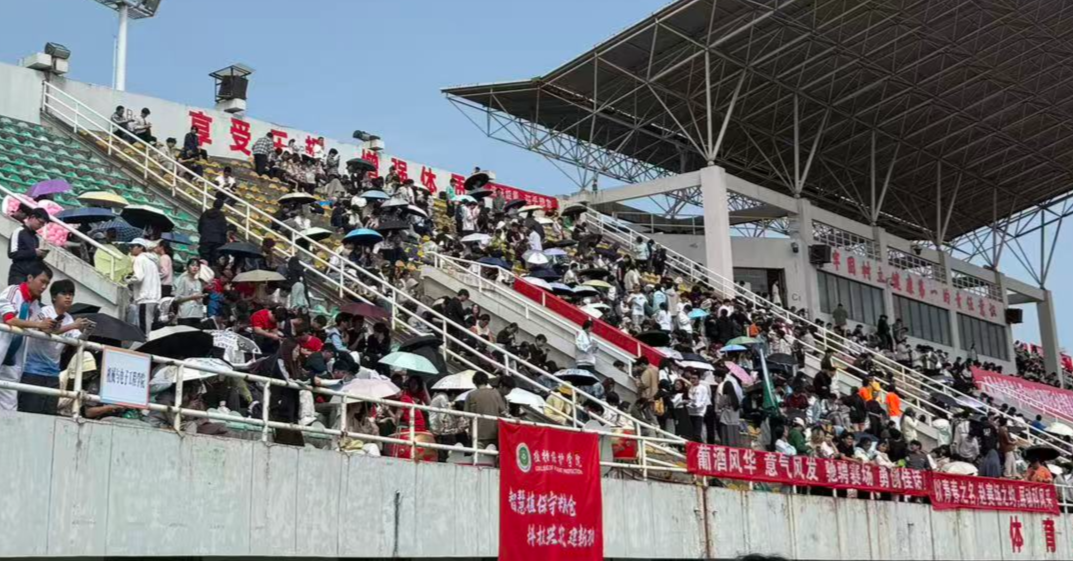 李智慧是葡萄酒学院的学生,她注意到开幕式上那些精彩的腰鼓表演背后,是同学们“花费很大心血去排练”的结果。她说,那些表演让她看到了“大西北的面貌”——粗犷、热烈,也藏着汗水。覃雪绵作为运动会组织的工作人员,更清楚一场运动会是怎么“炼”成的。从动员普通同学参与,到制定训练计划、安排训练,她说:“前期真的很累。但当你看到最后有收获的时候,才会真正享受这个过程。”看台上,她还留意到一个细节——竞赛场地里,运动员们没有遮阳伞。“希望明年能给他们配一把伞。”她认真地补充道。